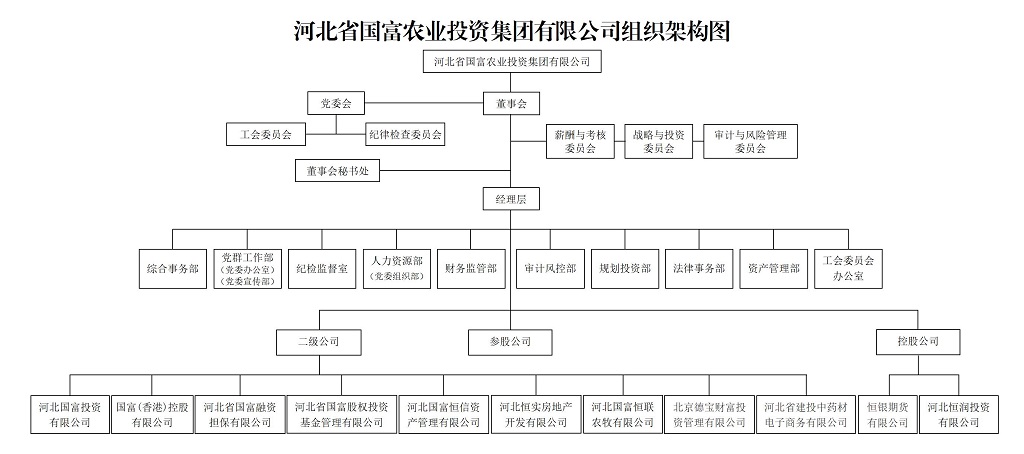 河北省國富農業(yè)投資集團有限公司成立于1992年,前身為河北省經濟開發(fā)投資公司。2001年11月,經河北省人民政府批準,重組設立為河北省國富農業(yè)投資集團有限公司,注冊資本3.34億元。2017年3月,按照省政府安排全面劃轉至省國資委管理,是河北省國資委授權的競爭類國有資產授權經營機構。2024年7月,經省委、省政府同意,省國資委決定將河北國富投資劃轉至河北建投集團管理。