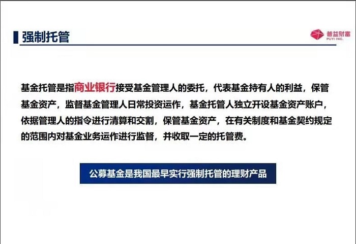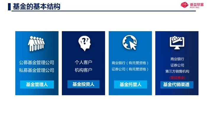 那另外一個呢,基金投資人就是咱們普通老百姓,也是基金投資人呢,還有機(jī)構(gòu)投資者,那另外一個就是基金托管人,就是來保管著咱們資金的安全的就是基金托管人,第一班是有商業(yè)銀行或者證券公司,他們還必須得有托管的資質(zhì),當(dāng)然了,還有基金代銷機(jī)構(gòu),也就是去銷售基金的,比如說一些商業(yè)銀行呀,證券公司呀,期貨公司呀,還有一些第三方的獨(dú)立的基金代銷機(jī)構(gòu),像咱們的普益基金就是基金代銷機(jī)構(gòu)。