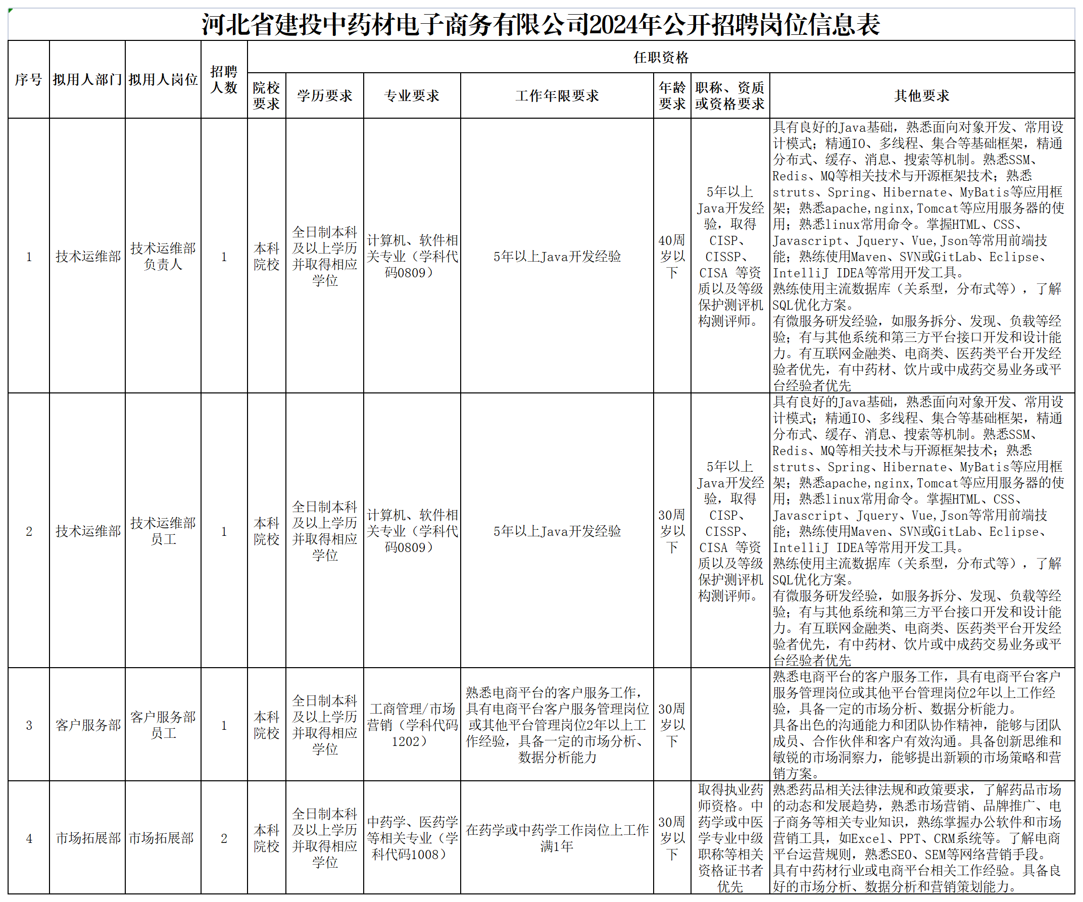 河北省建投中藥材電子商務(wù)有限公司2024年公開(kāi)招聘公告